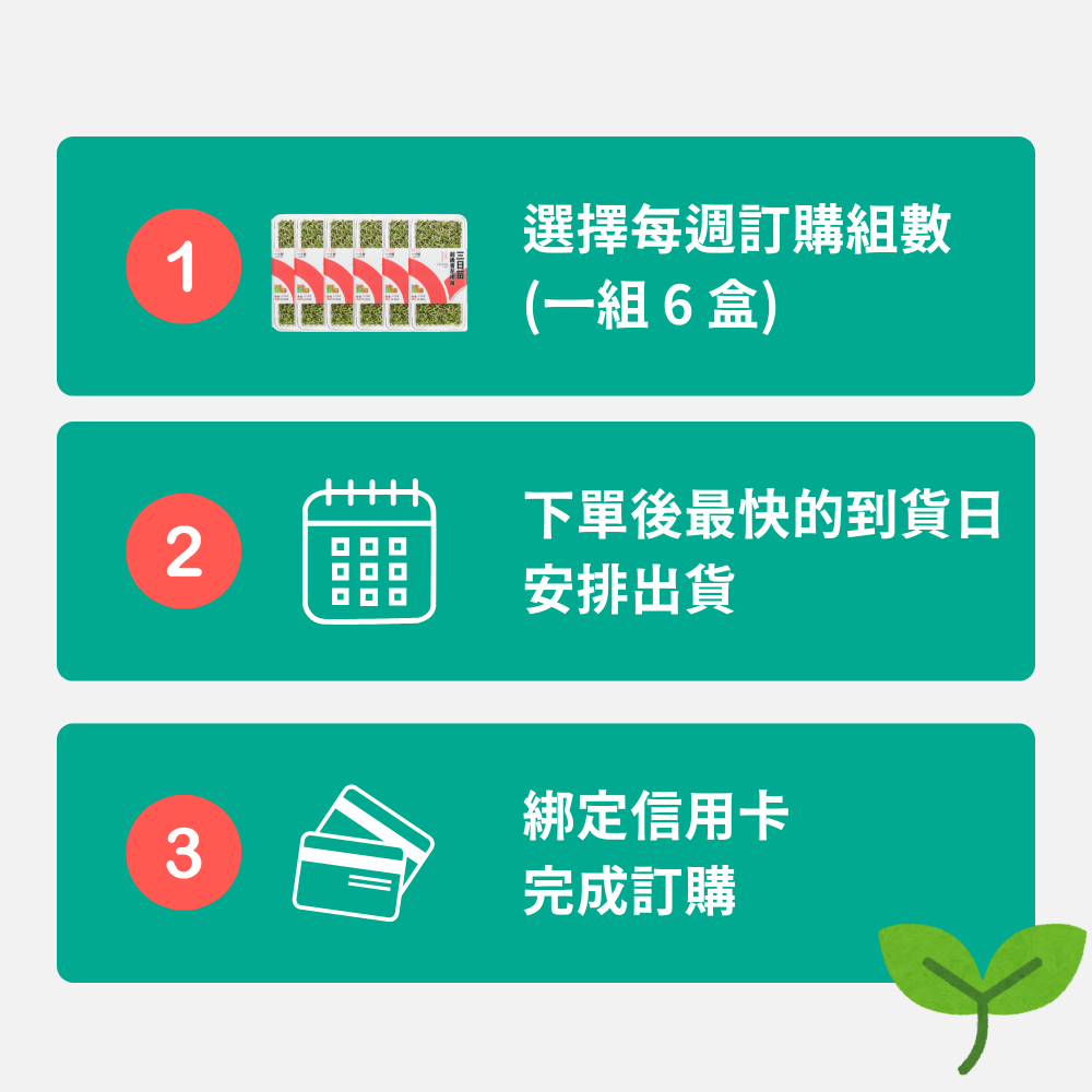 🌱 小提醒:商品數量請選擇您每週希望收到的「芽苗組數」