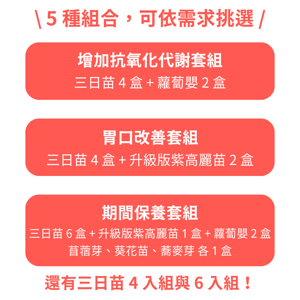 三日苗 4 盒 + 升級版紫高麗苗 2 盒